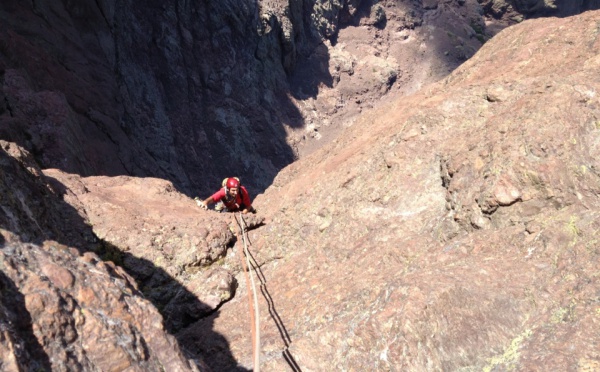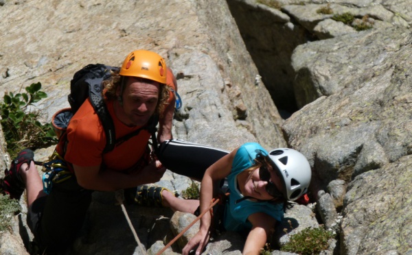 Lisbeth, accompagnée de Christian dont c'était la première grande voie, m'ont suivis dans San Teofalu. Très belle voie au combien classique qui parcourt les dièdres de la face sud-est. Un duo...
