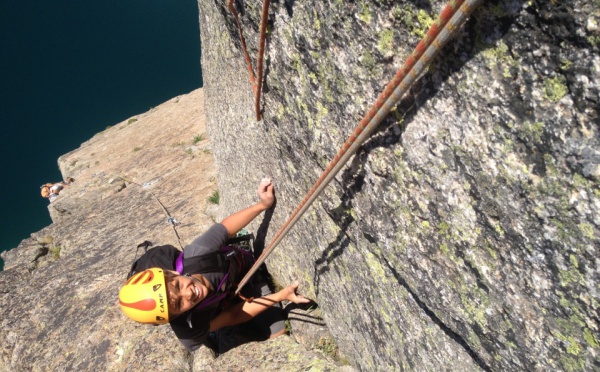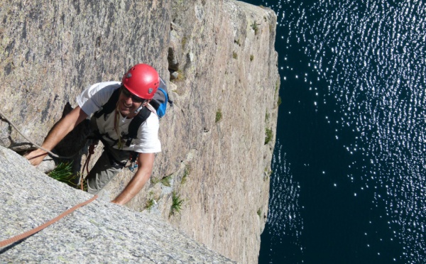 Demande très précise de Vincent qui voulait réaliser cette course à tout prix. Il n'a pas été déçu par la beauté de la ligne, par la qualité du rocher. C'est vrai que l'endroit est magnifique...