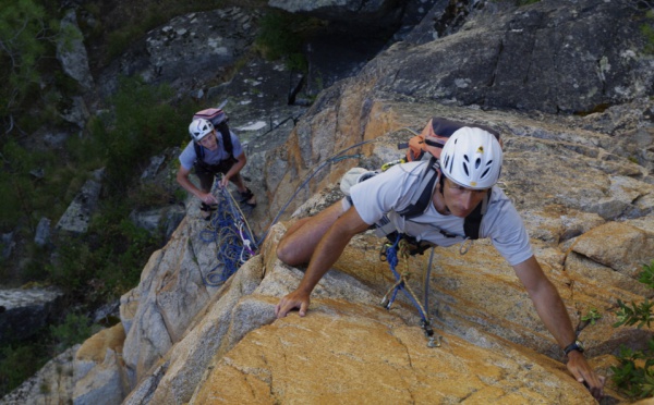 Dernière étape de grimpe en Corse pour la fine équipe. Grande voie physique et exigeante qu'Amandulina. L'enchainement des longueurs a été rendu difficile par les dix jours de grimpe non stop....