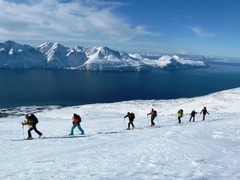 Situé à 70° de latitude Nord, la péninsule des Alpes de Lyngen offre d’innombrables possibilités pour le skieur de randonnée.Chaque jour nous chaussons nos skis au bord de l’eau et partons à la découverte de cette région sauvage aux panoramas insolites.