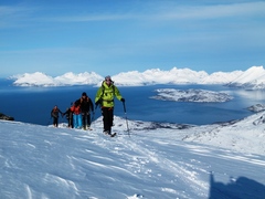 Situé à 70° de latitude Nord, la péninsule des Alpes de Lyngen offre d’innombrables possibilités pour le skieur de randonnée.Chaque jour nous chaussons nos skis au bord de l’eau et partons à la découverte de cette région sauvage aux panoramas insolites.