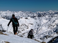 Situé au cœur des Pyrénées Espagnoles dans le Parc National d’Aigüestortes, le massif des Encantats offre un terrain de jeu idéal pour le raid à ski.